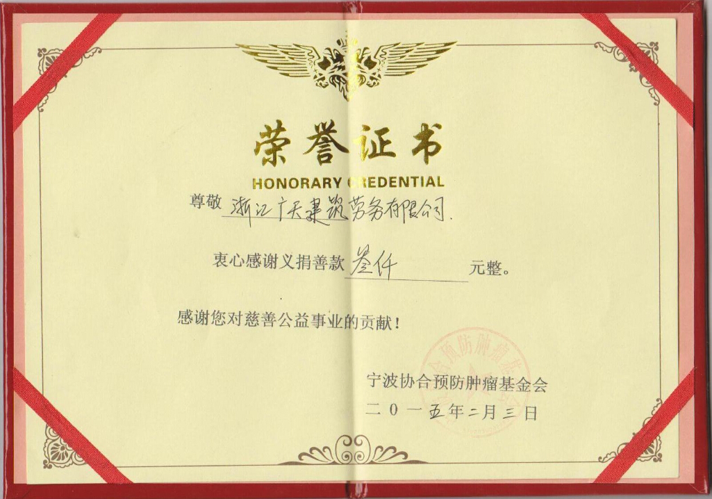近日,公司積極參與社會公益事業(yè),向?qū)幉▍f(xié)合預(yù)防腫瘤基金會捐款三千元。