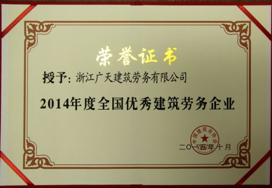 2014年度全國優(yōu)秀建筑勞務企業(yè)