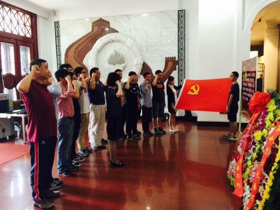 在東北烈士紀(jì)念館分別觀看了“黑土英魂”和“偽滿哈爾濱警察廳遺址及罪惡展”。伴著一幅幅發(fā)黃的照片、一件件靜默的遺物、一尊尊生動(dòng)的雕像,年輕鮮活的生命、舍生忘死的別離、保家衛(wèi)國(guó)的義舉……都述說(shuō)著那段倍受蹂躪、同仇敵愾,英勇不屈、反抗侵略的歷史。堅(jiān)忍的趙一曼、怒吼的陳翰章、堅(jiān)定的趙尚志、不屈的楊靖宇……更使大家感受到了不怕?tīng)奚?、前赴后繼的革命精神和堅(jiān)定的革命信仰,并深深地被感染、被震撼。隨后在莊嚴(yán)的黨旗面前,在英勇的烈士雕像注視下,黨支部組織廣大黨員、入黨積極分子懷著沉重的心情進(jìn)行了一次意義深刻的入黨宣誓活動(dòng)。