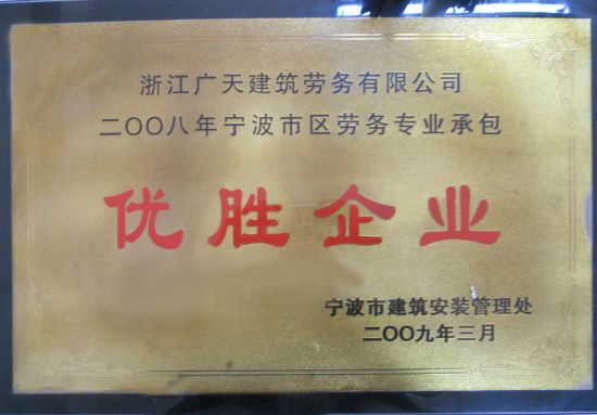 2008年寧波市區(qū)勞務(wù)專業(yè)承包優(yōu)勝企業(yè)獎