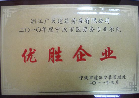 2010年年度寧波市區(qū)勞務(wù)承包優(yōu)勝企業(yè)