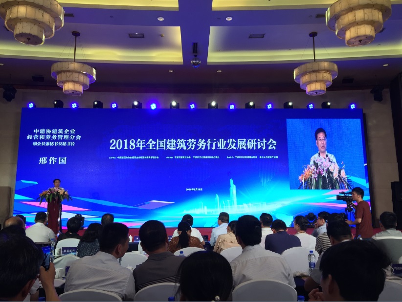 由中國建筑業(yè)協(xié)會(huì)建筑企業(yè)經(jīng)營與勞務(wù)管理分會(huì)主辦,寧波市建筑業(yè)協(xié)會(huì)、寧波市江北區(qū)甬江街道辦事處承辦,寧波市江北區(qū)建筑業(yè)協(xié)會(huì)和甬江人力資源產(chǎn)業(yè)園協(xié)辦的2018年全國建筑勞務(wù)行業(yè)發(fā)展研討會(huì),5月25日在寧波市江北區(qū)遠(yuǎn)洲大酒店遠(yuǎn)洲廳召開。本次會(huì)議聚焦推進(jìn)建筑勞務(wù)用工制度改革、培育建筑產(chǎn)業(yè)工人隊(duì)伍、探索建筑勞務(wù)行業(yè)的可持續(xù)性發(fā)展之路。住建部建筑市場監(jiān)管司施工處米凱主任科員、中建協(xié)建筑企業(yè)經(jīng)營與勞務(wù)管理分會(huì)邢作國副會(huì)長兼秘書長、寧波市江北區(qū)人民政府尤武衛(wèi)副區(qū)長、寧波市住建委審批處高波處長、寧波市建筑業(yè)協(xié)會(huì)徐文衛(wèi)會(huì)長應(yīng)邀出席;寧波市江北區(qū)有關(guān)職能部門負(fù)責(zé)人、中建協(xié)勞務(wù)分會(huì)理事單位、寧波本地建筑勞務(wù)企業(yè)、總承包企業(yè)代表共150余人參會(huì)。