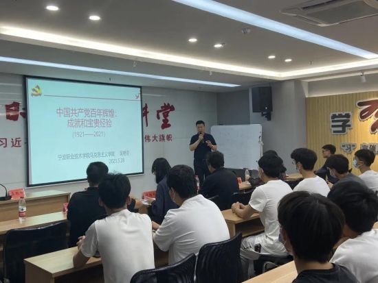 隨后,寧波職業(yè)技術(shù)學院建筑工程學院馬克思主義學院吳艷冬老師以《中國共產(chǎn)黨百年輝煌》為主題,給全體黨員及青年積極分子上了一堂生動的黨課。