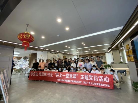 5月27日下午,浙江廣宜人力資源集團與寧波職業(yè)技術(shù)學院建筑工程學院聯(lián)合開展“共上一堂黨課”主題黨日活動。集團公司黨支部書記、董事長唐新球,寧波職業(yè)技術(shù)學院建筑工程學院黨總支書記葉陸艷等出席會議。學院師生代表、集團公司黨員代表、青年積極分子共50余人參加會議。